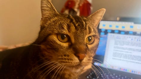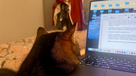 Minette est réveillée, elle me fixe en ronronnant tapotant sur mon clavier. Elle a trouvé son nouveau spot.